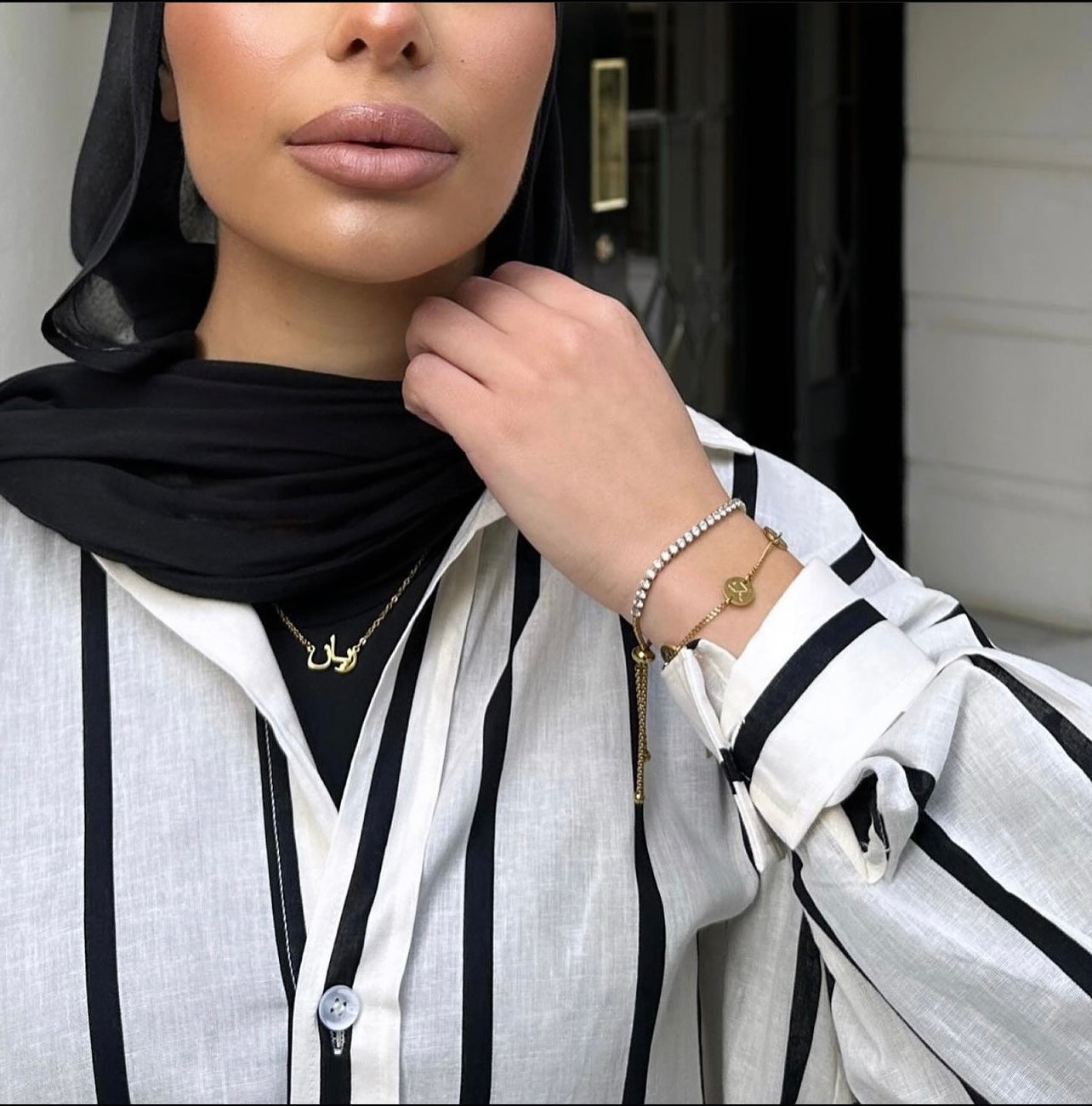 Crafted just for you, our Personalized Arabic Name Necklace is a timeless expression of identity and love. Each piece is custom-made with your chosen name or word, beautifully written in elegant Arabic calligraphy and finished in your choice of gold, silver plating